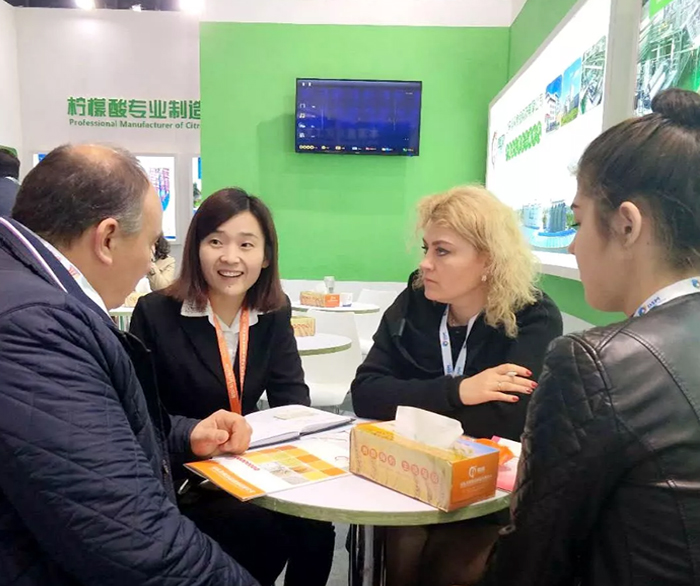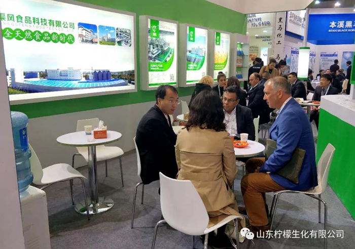 营销中心总经理曹建德带领12名内外贸部业务人员代表公司参加了展会,天天集团有限公司和山东渠风食品科技有限公司 高品质的柠檬酸及小麦深加工系列产品,高端的企业及品牌形象,在本次展会中备受瞩目。